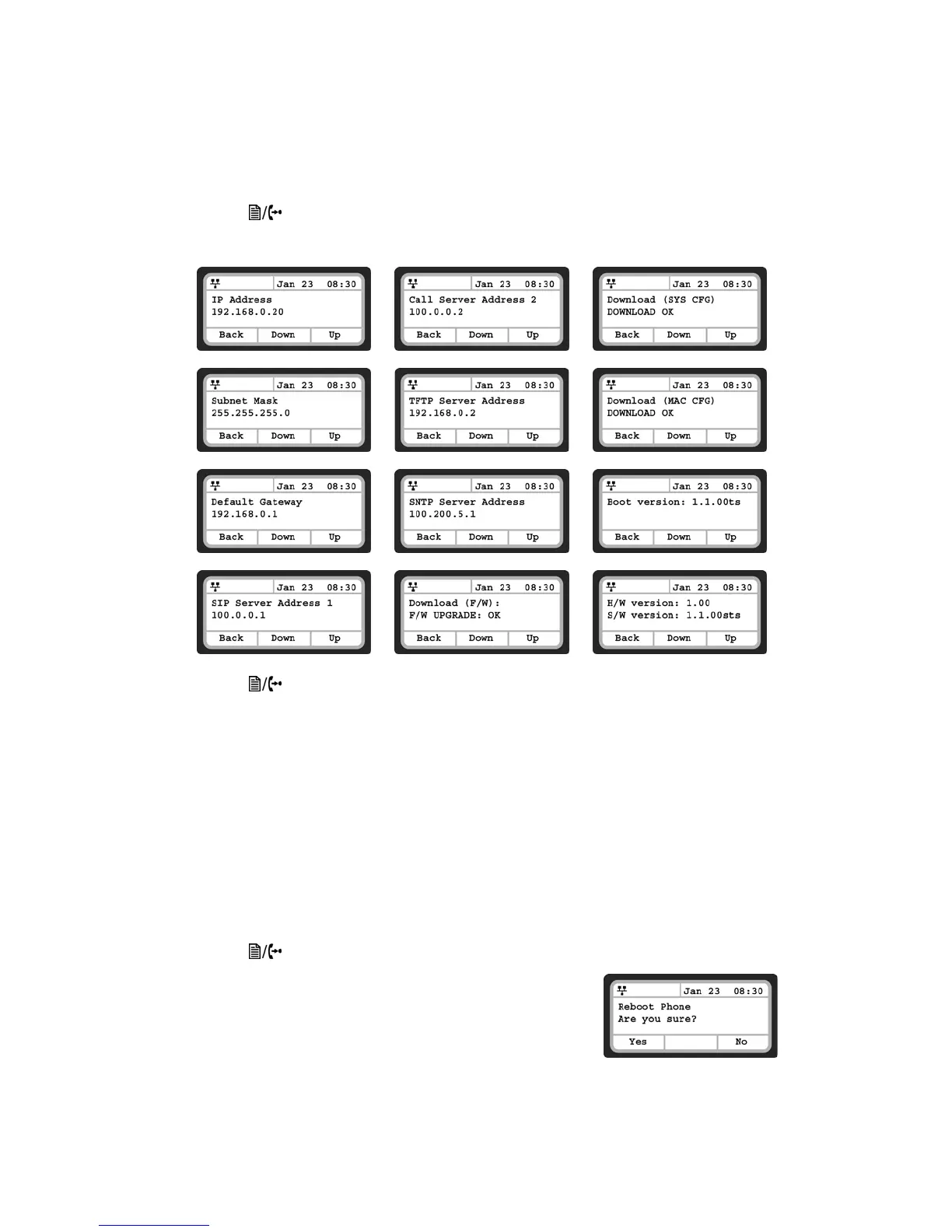 After changing certain parameters, the phone will require a reboot to utilize the settings. These settings