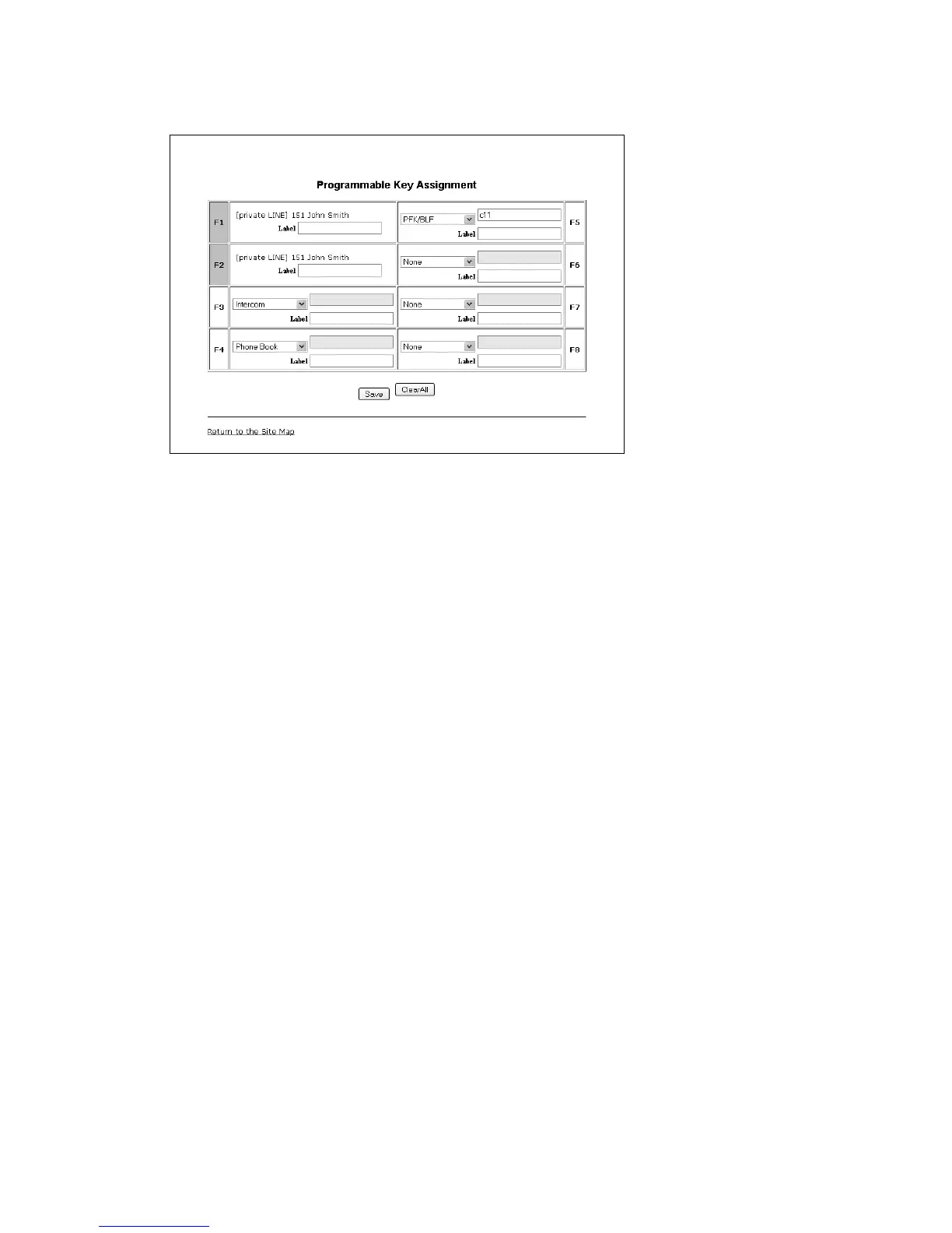 software (shown as None in the web interface of the phone), these keys can be programmed from the