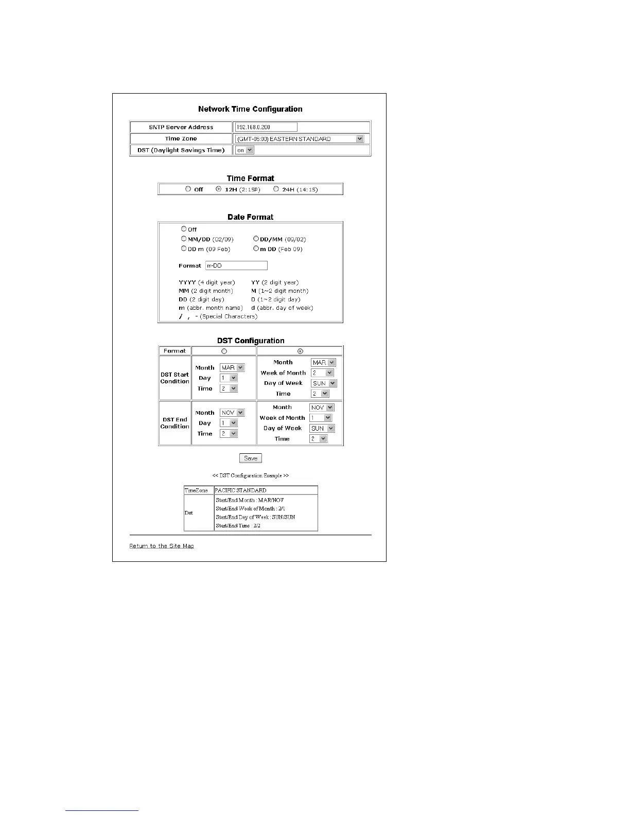 • SNTP Server Address: Enter the URL or IP address of the SNTP server that will be used to synchronize