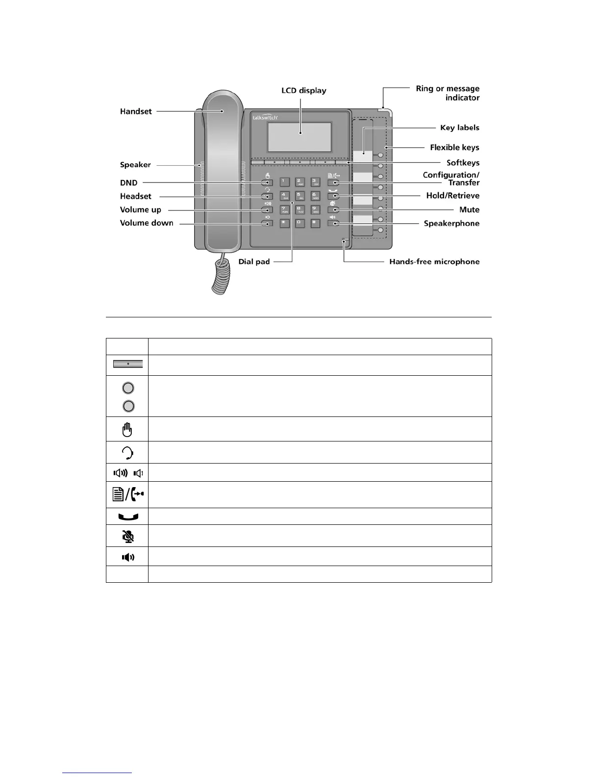 Configuration/Transfer — Use to transfer an active call. When the phone is not in use, pressing this