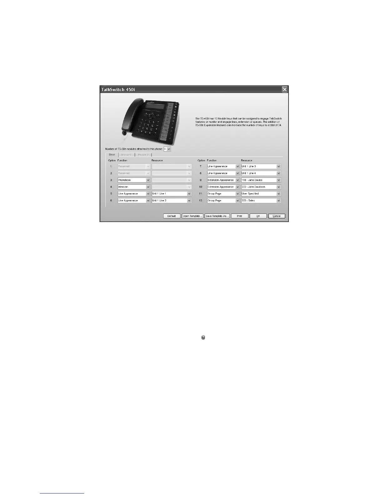 If the phone has TS-50e expansion modules installed, use the pull-down menu to select the