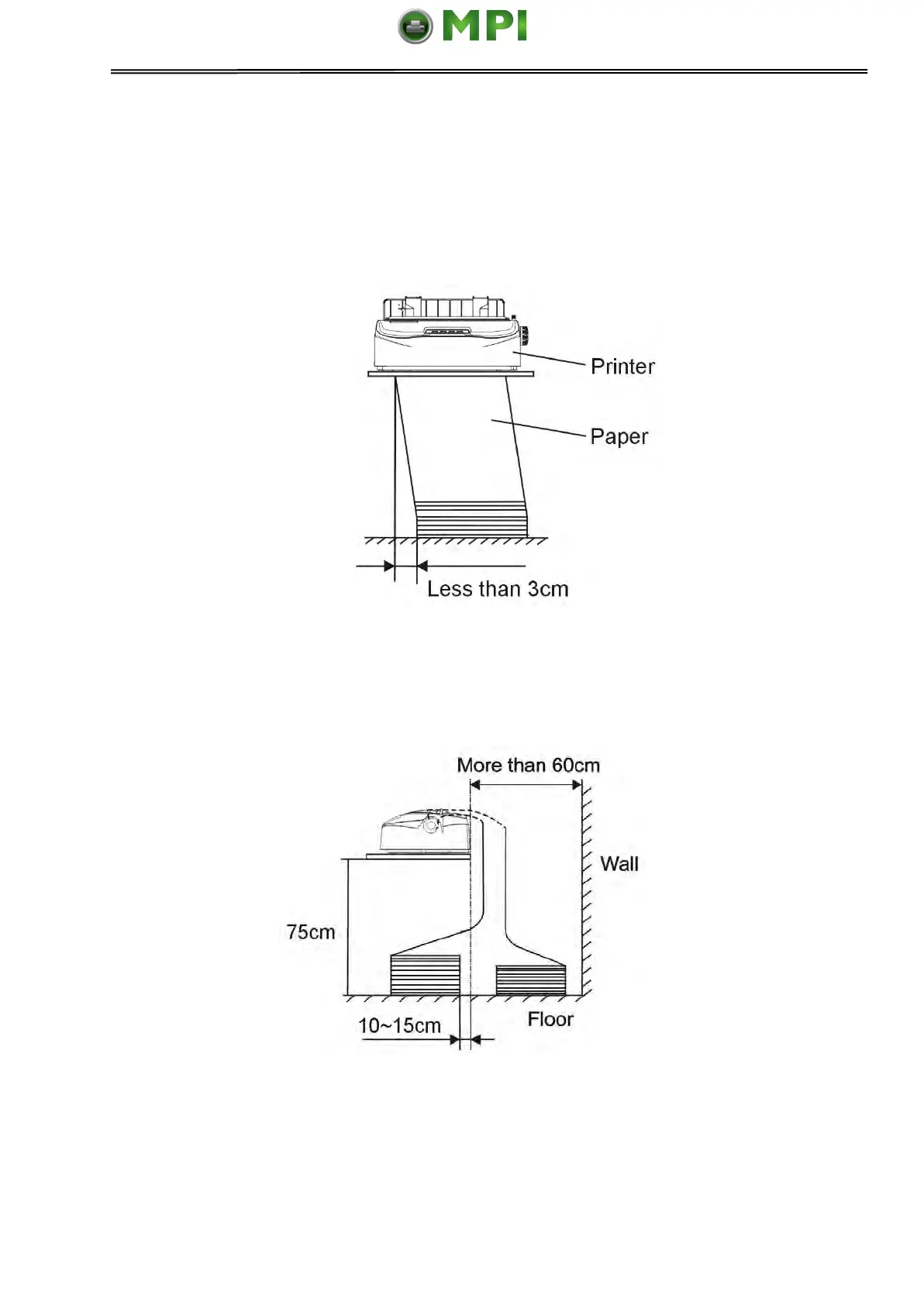 should be more than 60cm. To avoid paper jam, the distance between the continuous