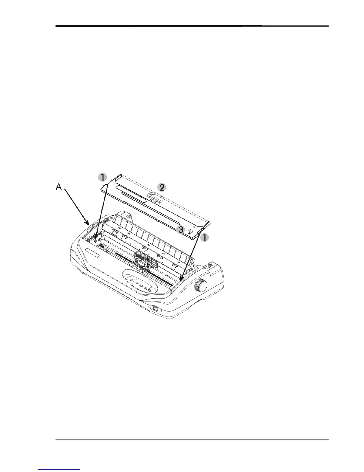 1. Ensure the power to the printer is off and the print gap lever “A” is set to the furthest open position. Move