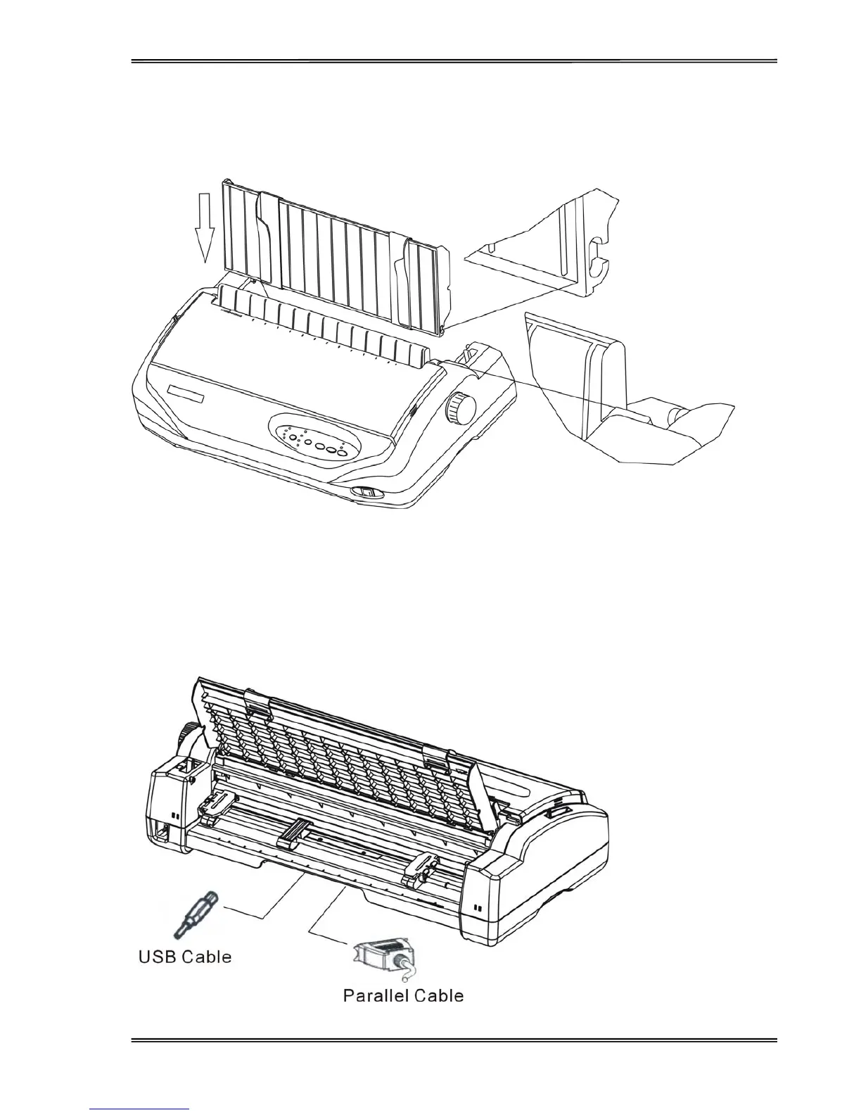 The 36-pin Centronics parallel and USB ports are located at the rear of the printer. IMPORTANT: Make sure the