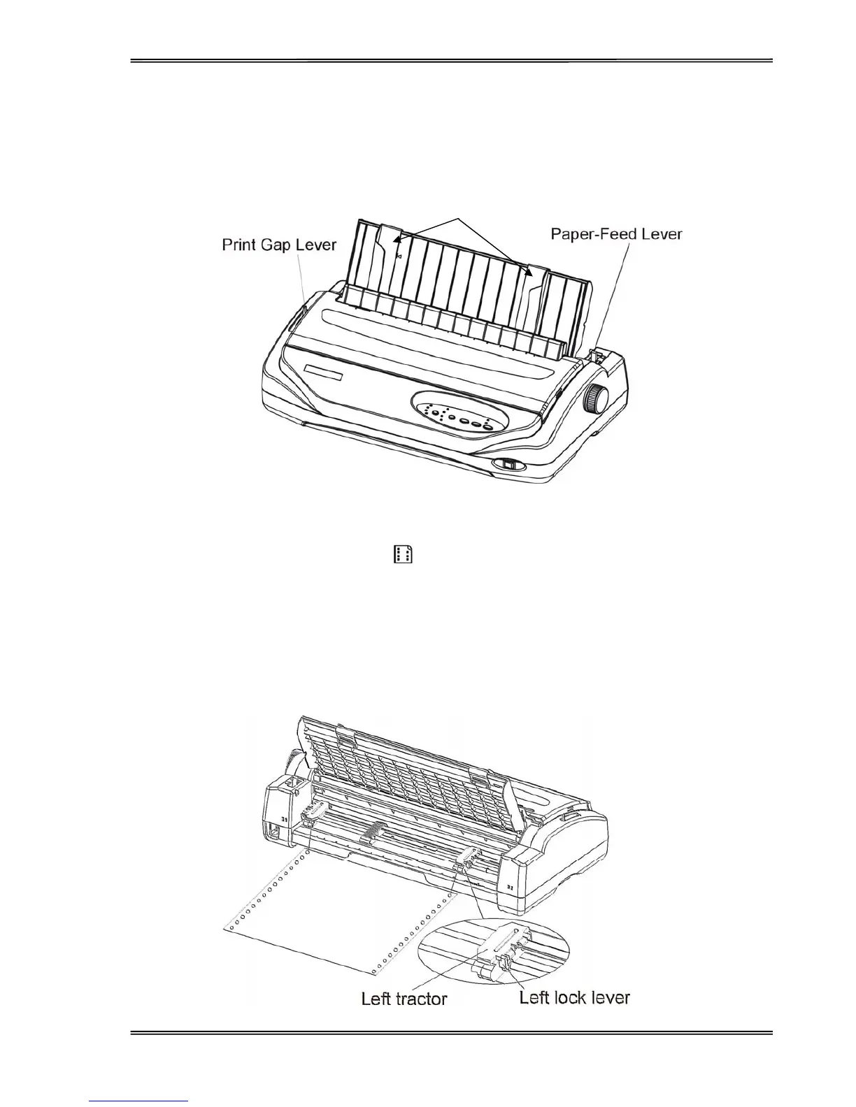 1. Move the paper-feed lever backward to “ ” for continuous paper position.