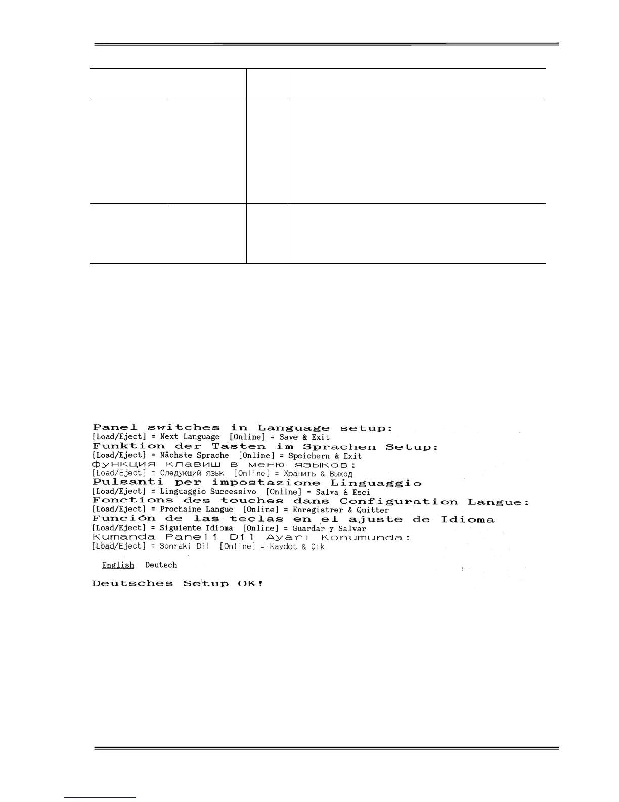 [Load/Eject] keys on the panel and power-on. Upon exiting the Language Setup Menu, a listing of the current