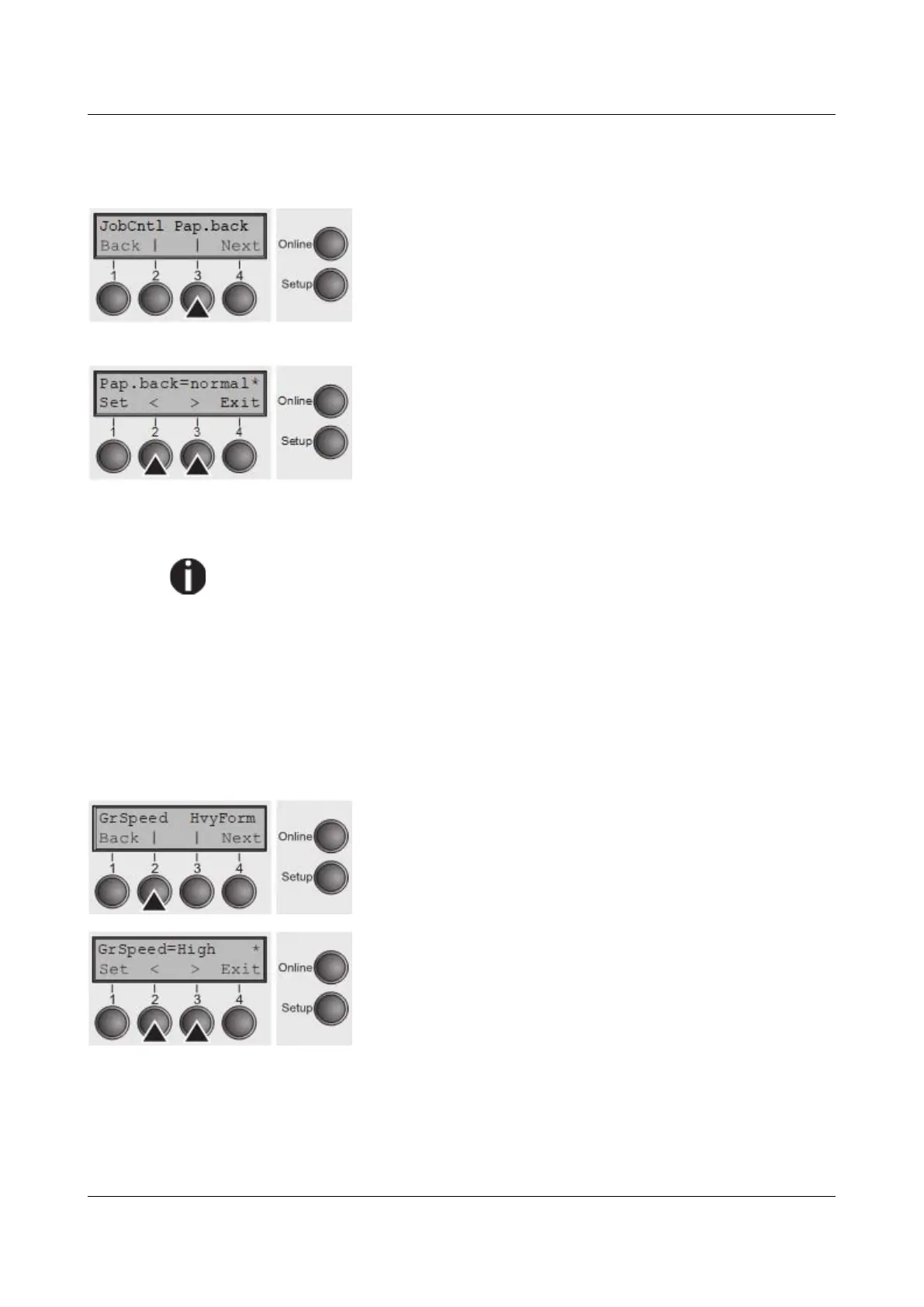 Tally Dascom 2820 - Settings for Paper with Dark Back (Pap.back); Graphic Print Speed (Grspeed)