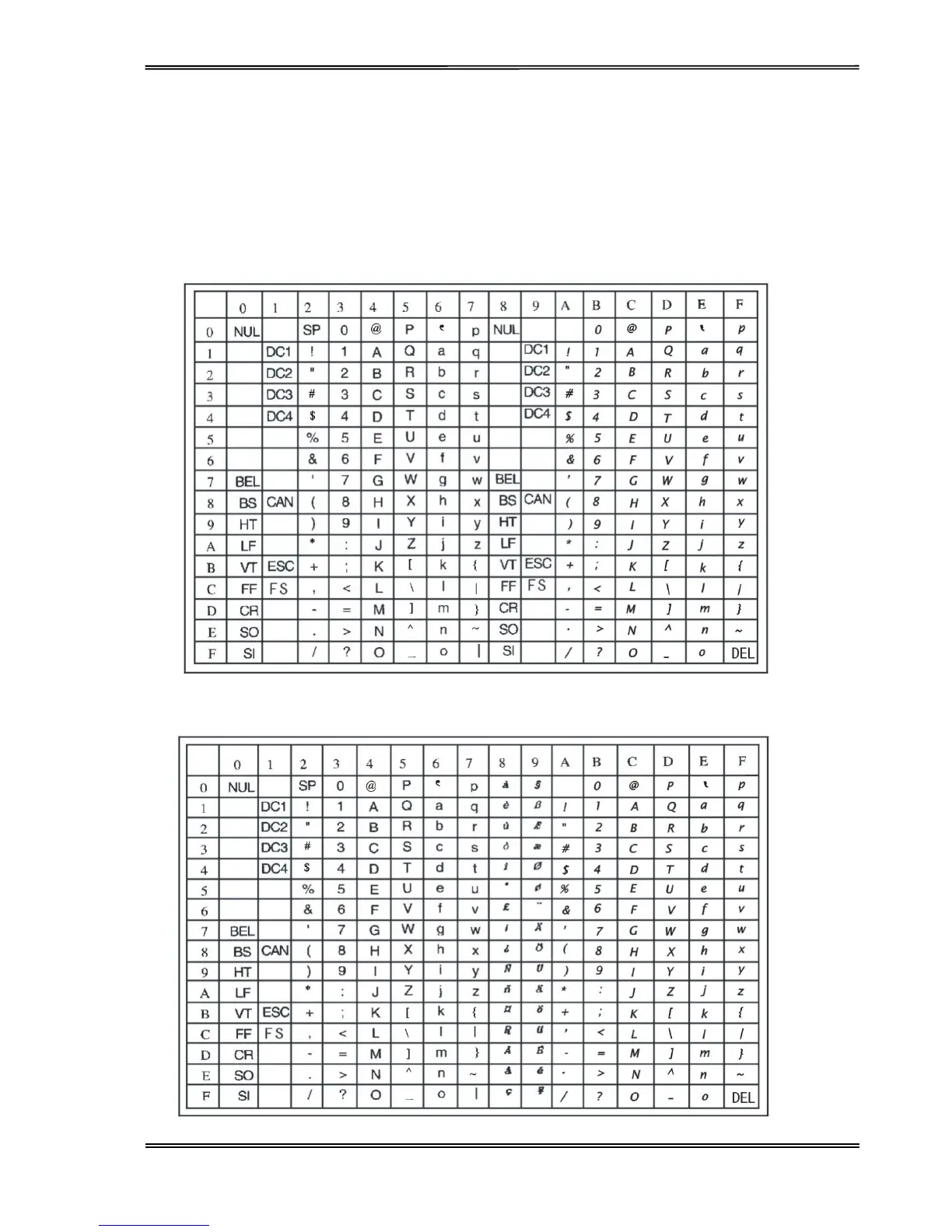 Tally Dascom 5130P - Character Sets & Code; Character Sets