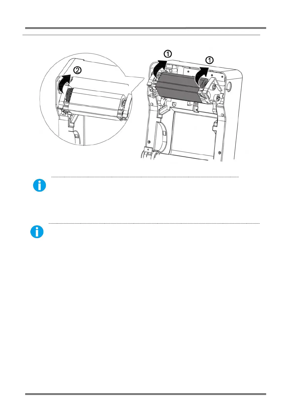 Keep the brighter surface of ribbon inside while winding the print head.