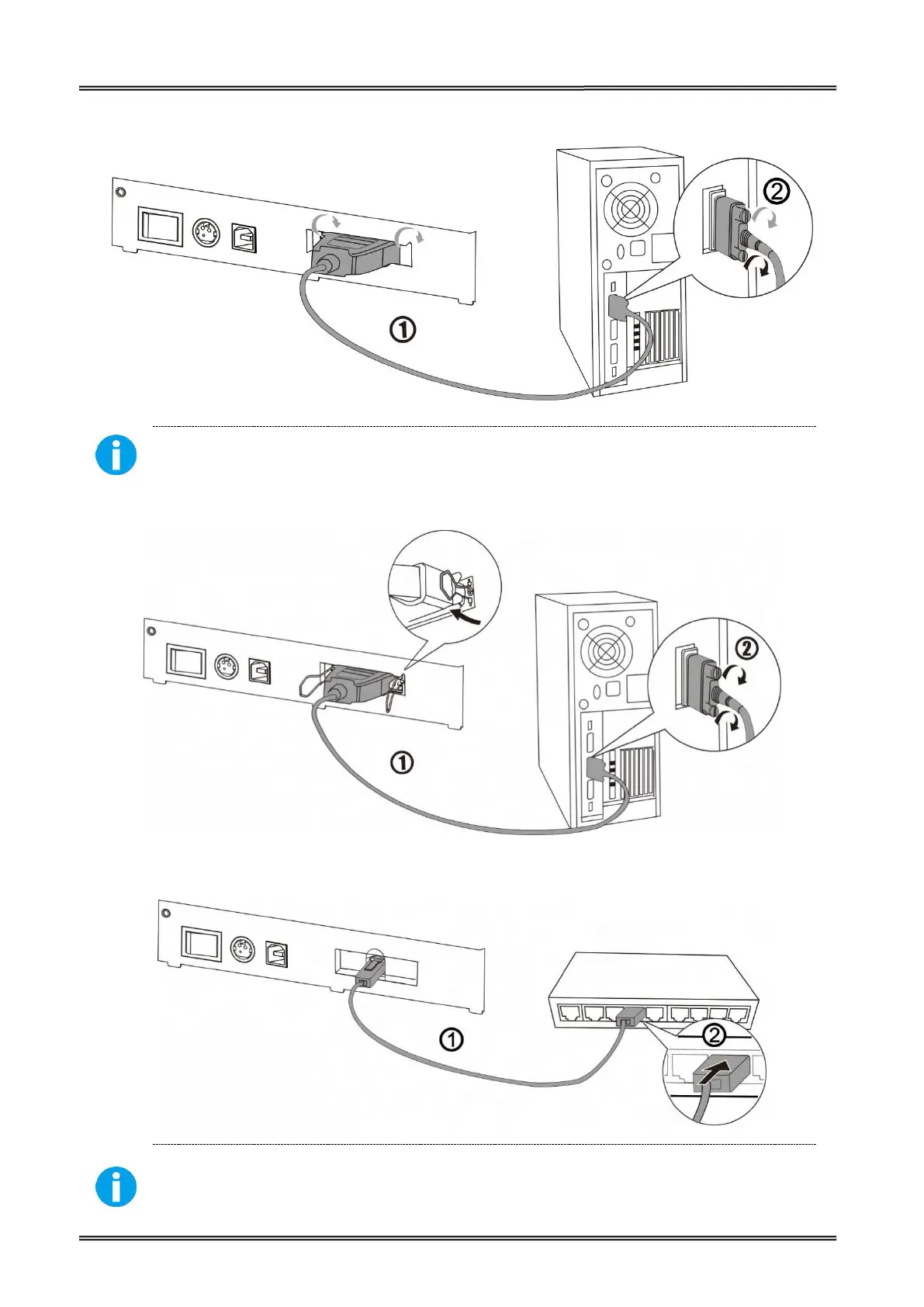 Tally Dascom DL-200 - Connecting Serial Interface; Connecting Parallel Interface; Connecting Ethernet Interface