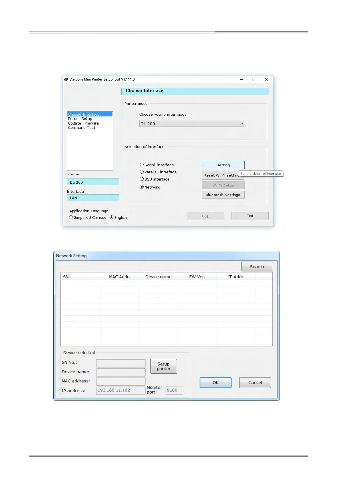 (1) Select Network interface in the setup tool. Then click “Setting.