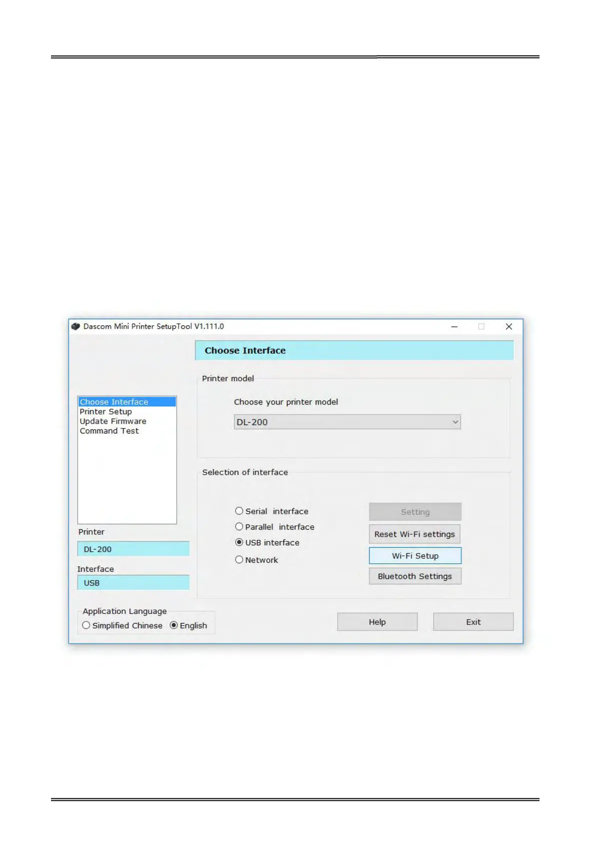 (2) Select USB interface in the setup tool. And then click “Wi-Fi Setup”.