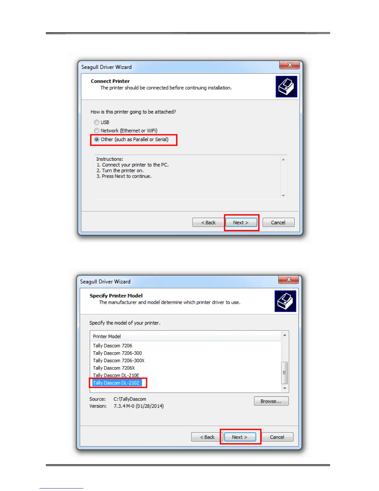 Tally Dascom DL-210 - Seagull Driver Wizard