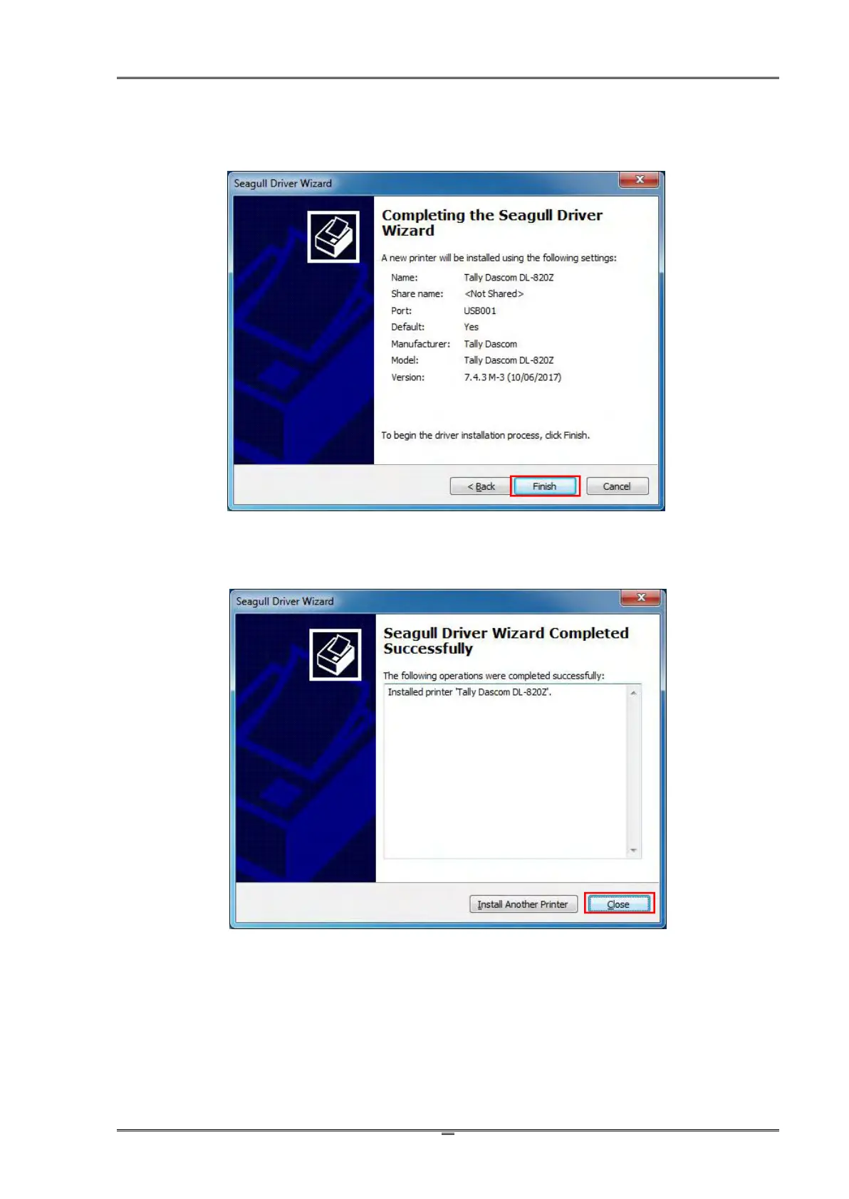 7 Then the printer driver is successfully installed. Click Close.