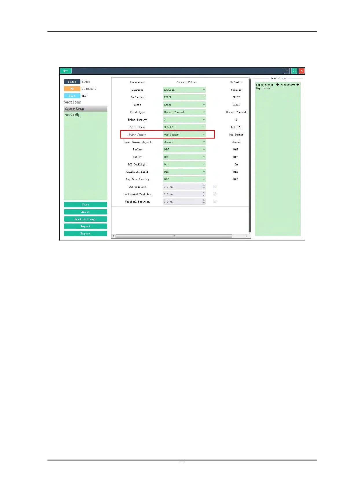 When you use the media with notches between labels, select the Gap Sensor.