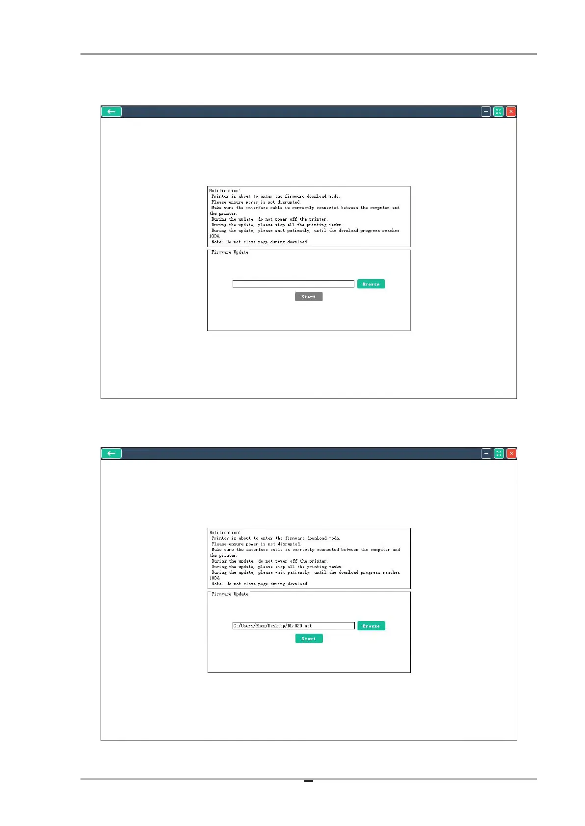 2 Locate the firmware file by clicking Browse. Then click Start. A message box pops up to