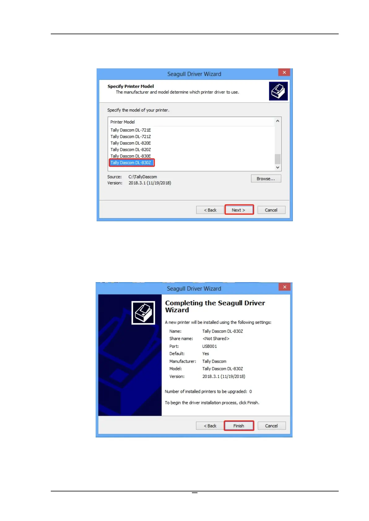 6 Select the Printer Driver model. Then click Next.