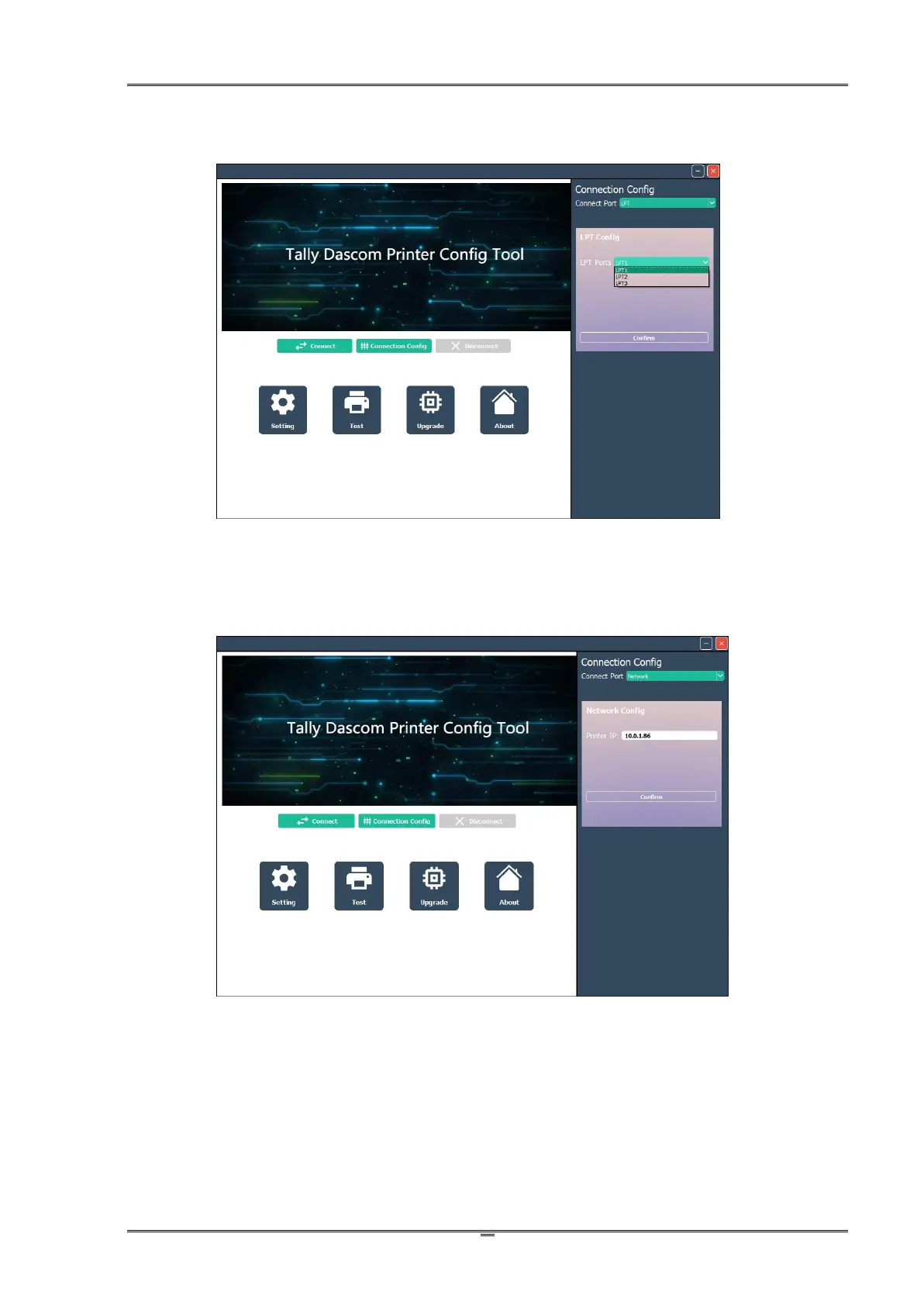(5)Network configuration by adding the Printers assigned IP Address –