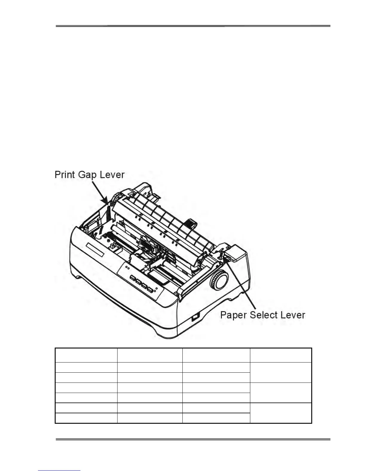 The print gap lever is on the left side of the printer inside the top cover. Take care to adjust the print gap lever