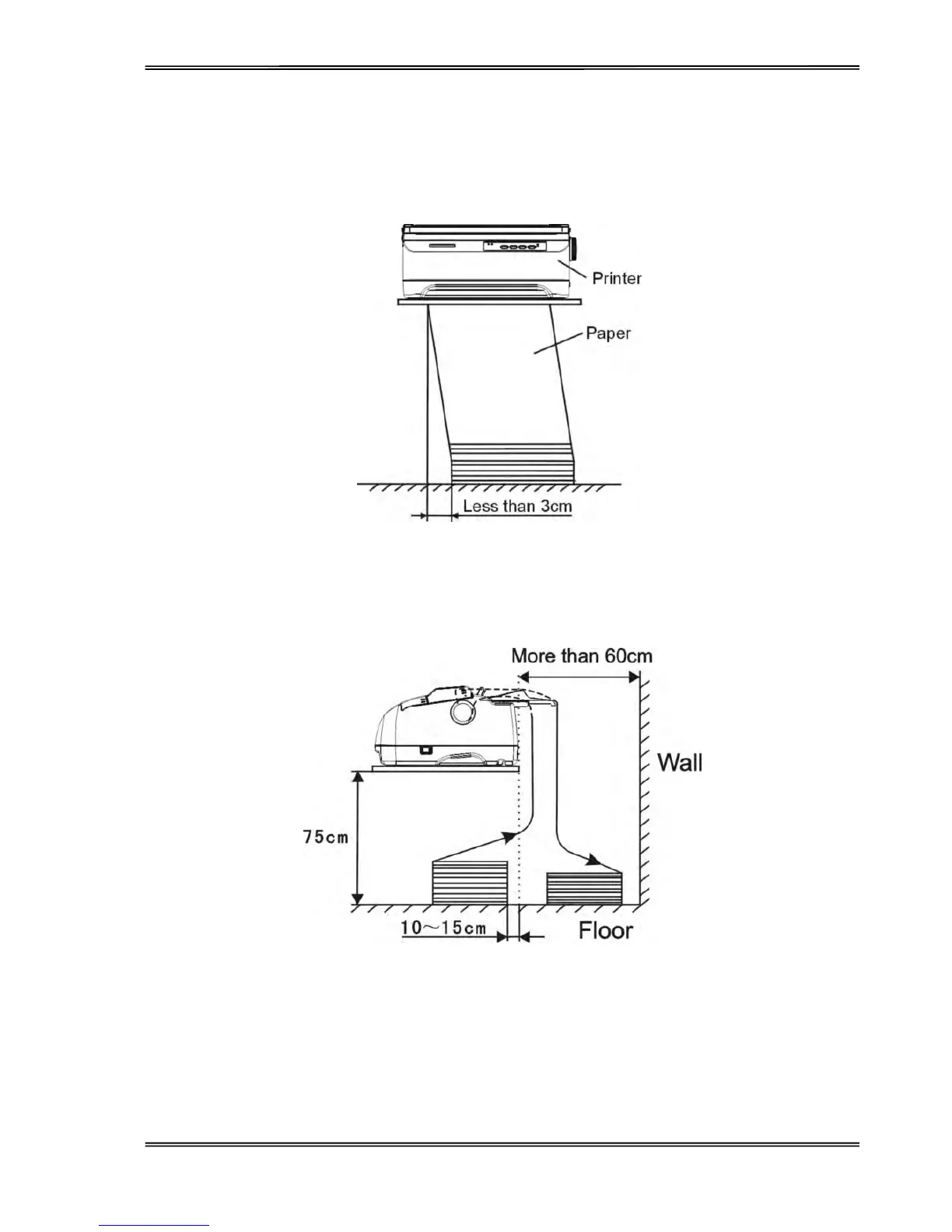 cm. To avoid paper jam, the distance between the continuous paper and the edge of desk should be 10~15