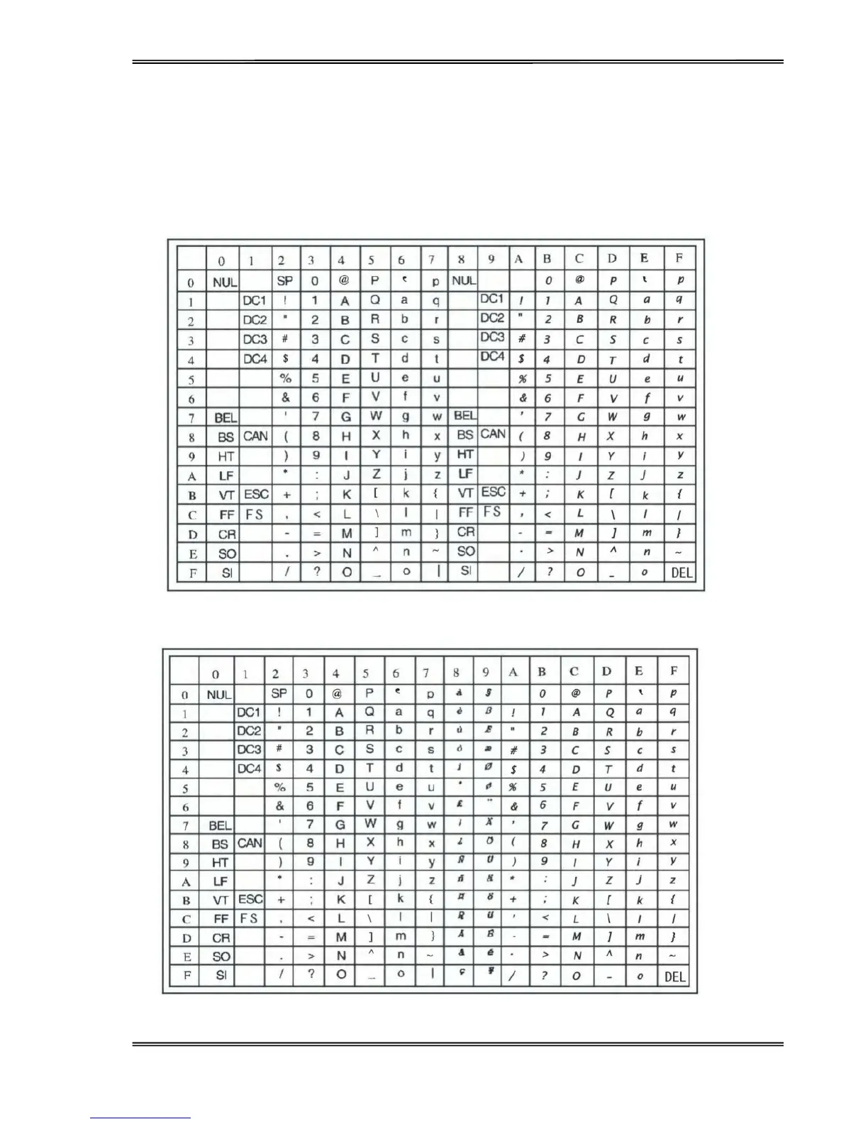 Tally Dascom 1125 - Character Sets & Code; Character Sets