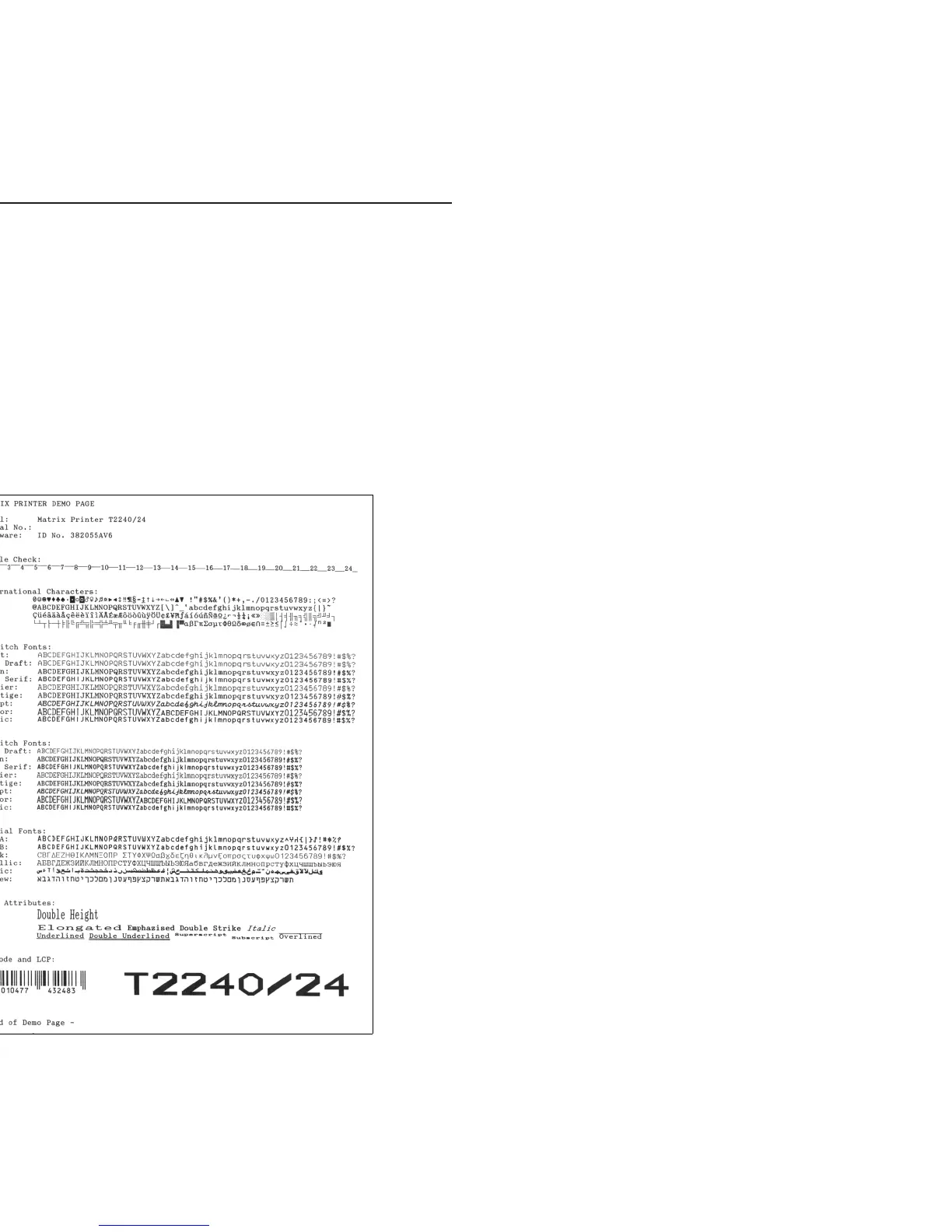 comprobación de agujas, tipos de letra, atributos de tipos de letra y códigos de barras/LCP.