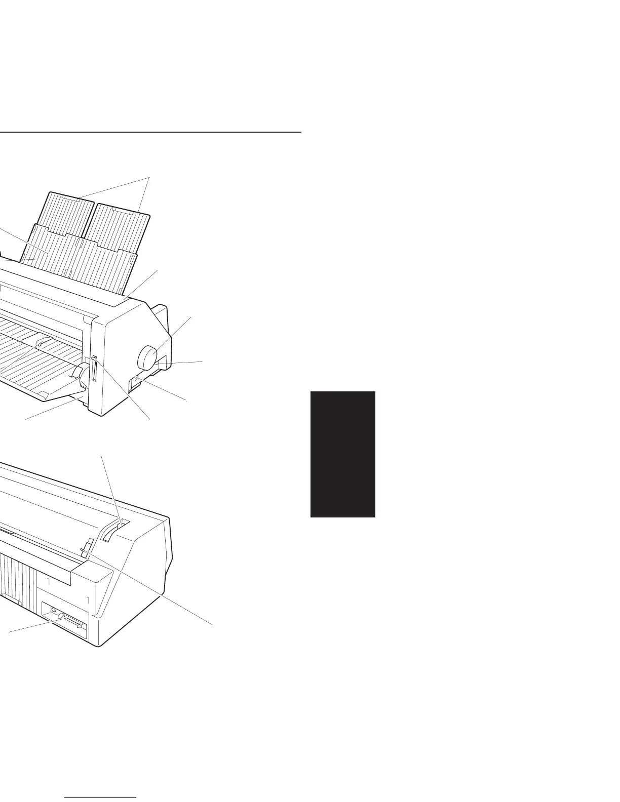 Vue d’ensemble Aux figures suivantes sont indiqués tous les éléments de l’imprimante; le tableau qui suit liste