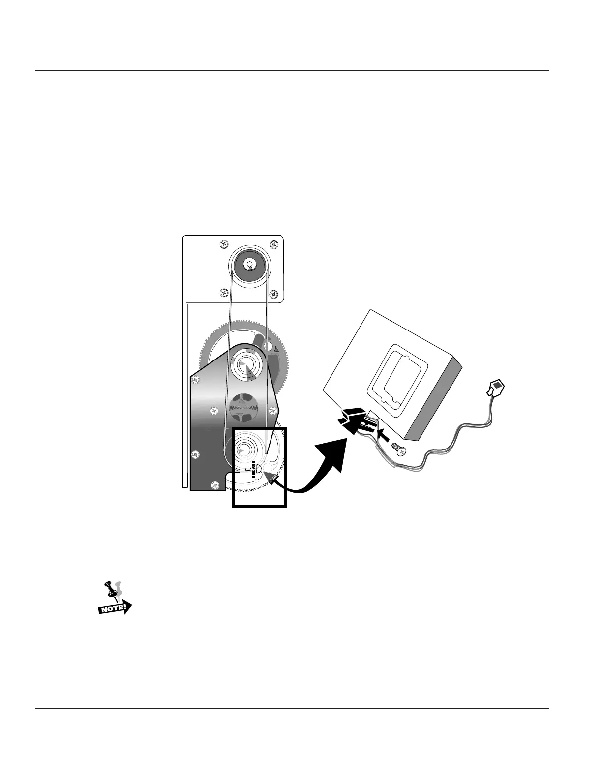 The Shuttle Motion Sensor is mounted on the bracket behind the lower Shuttle Gear.