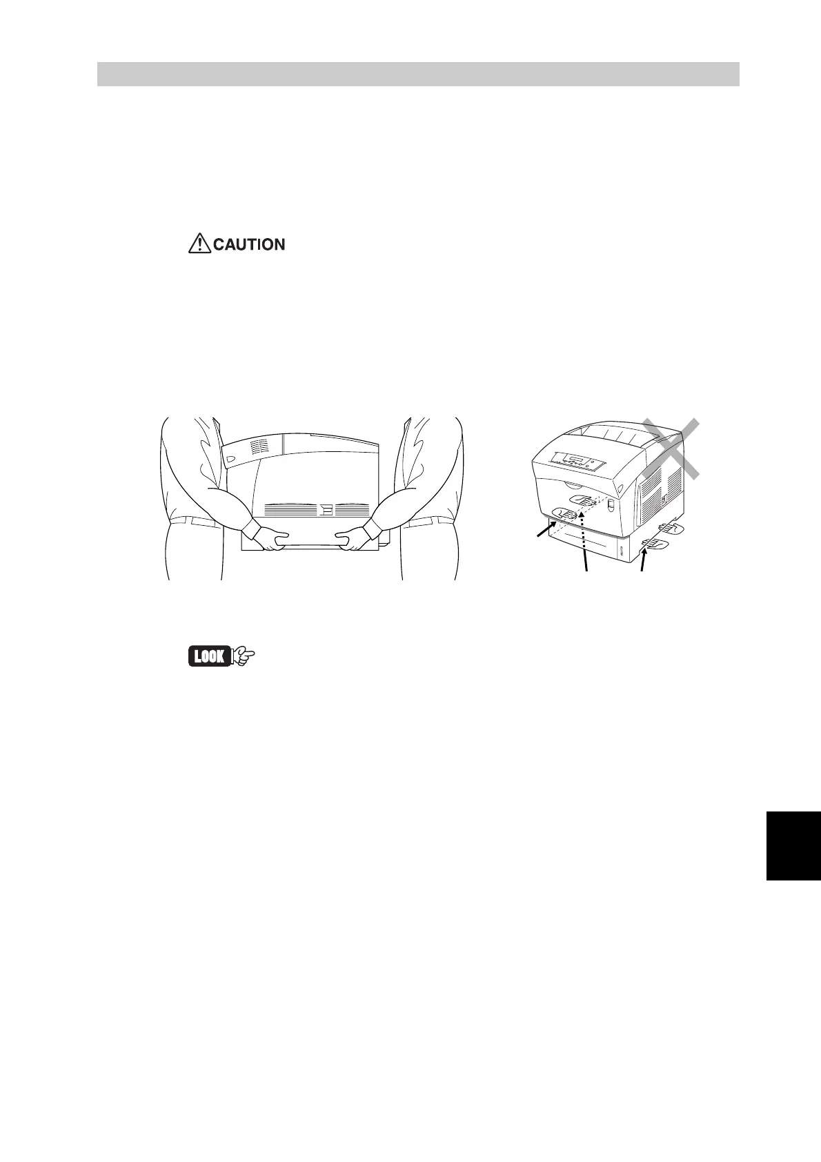 hands. Never try to lift the printer by gripping any other