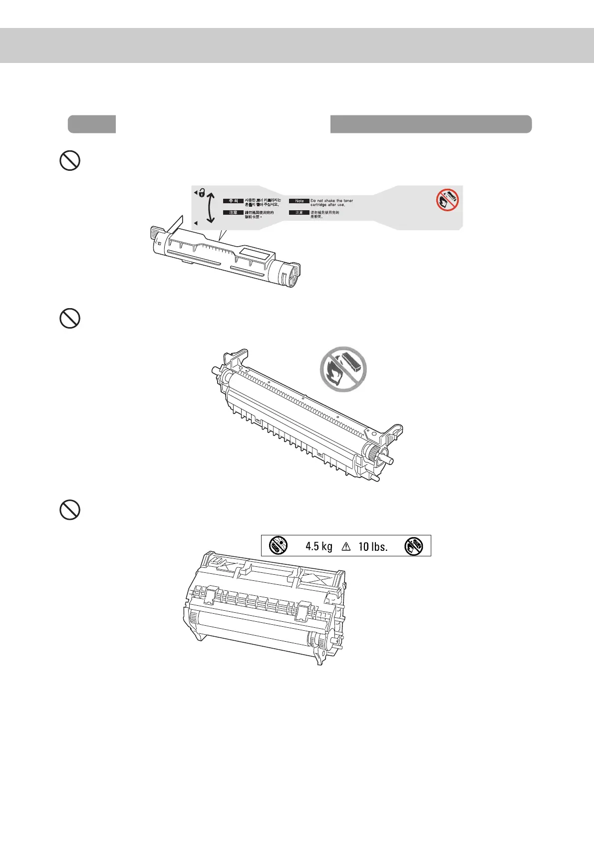 Never throw a transfer roller cartridge into an open flame. It can cause an explo-