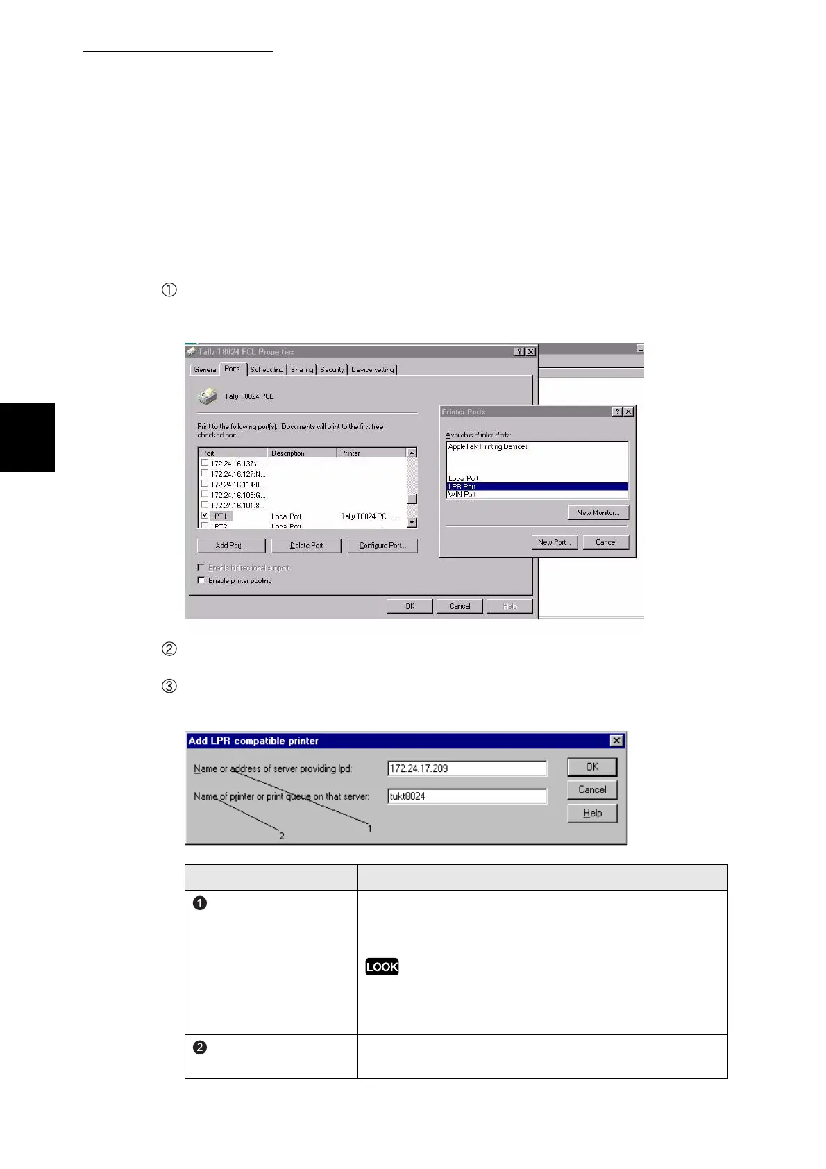 Example: For Name or address of server providing lpd, "172.24.17.209", and the Name