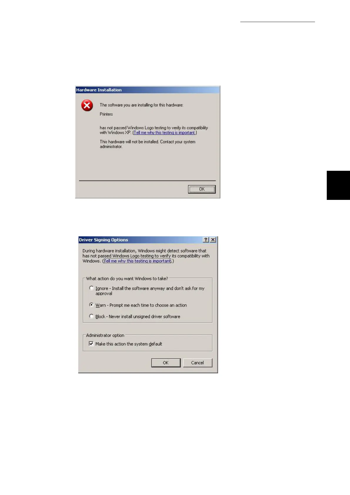 Then cancel the installation and change the driver signing to warn . To do this check the