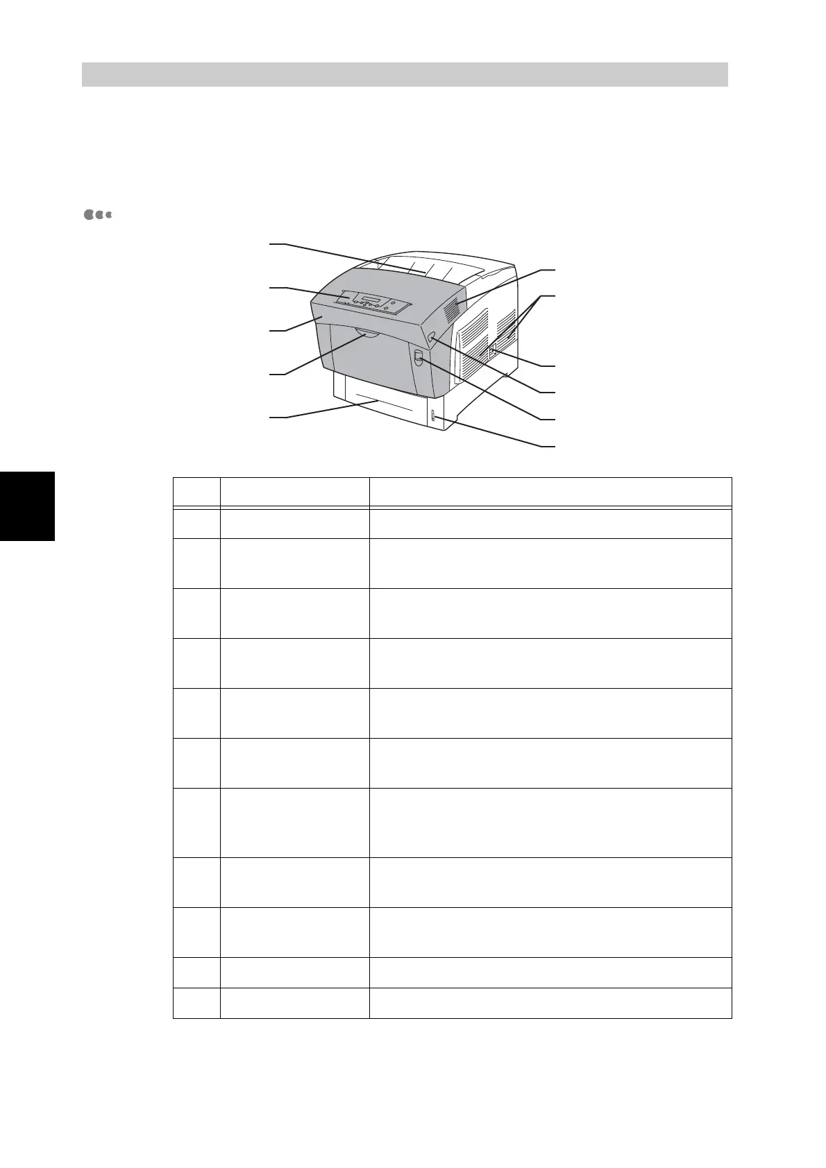 The names and functions of the various parts of the printer are as follows: