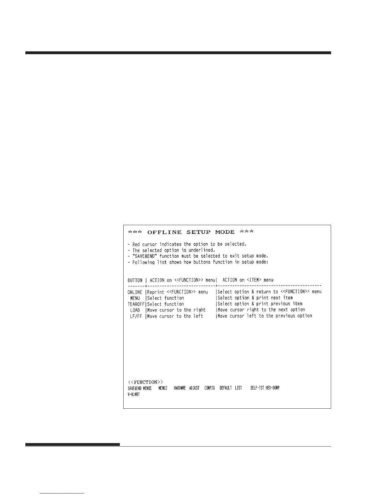 Check that the <<FUNCTION>> menu is printed at the bottom of the