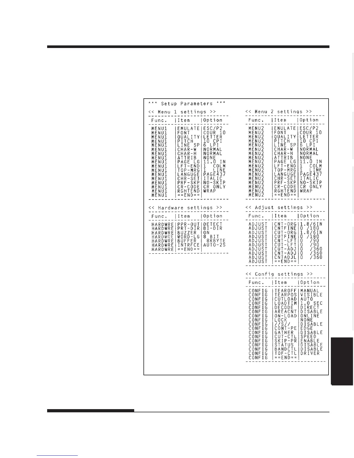 Printout of factory defaults using LIST