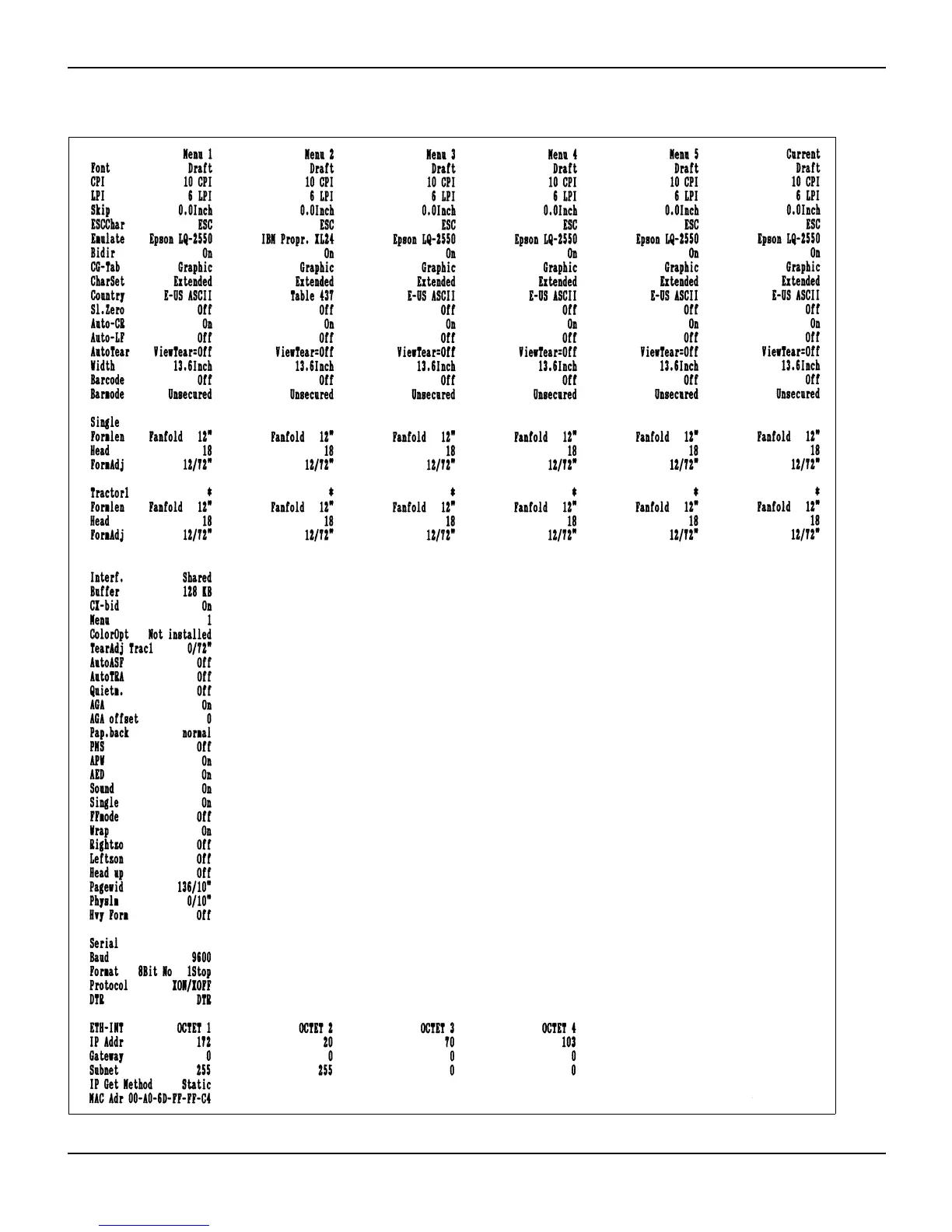 TallyGenicom 2265+ - Menu Settings (Example)