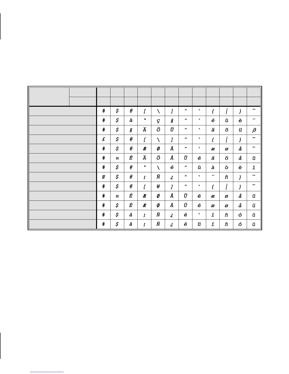 TallyGenicom Matrix Printer - International Substitution Table - italic font