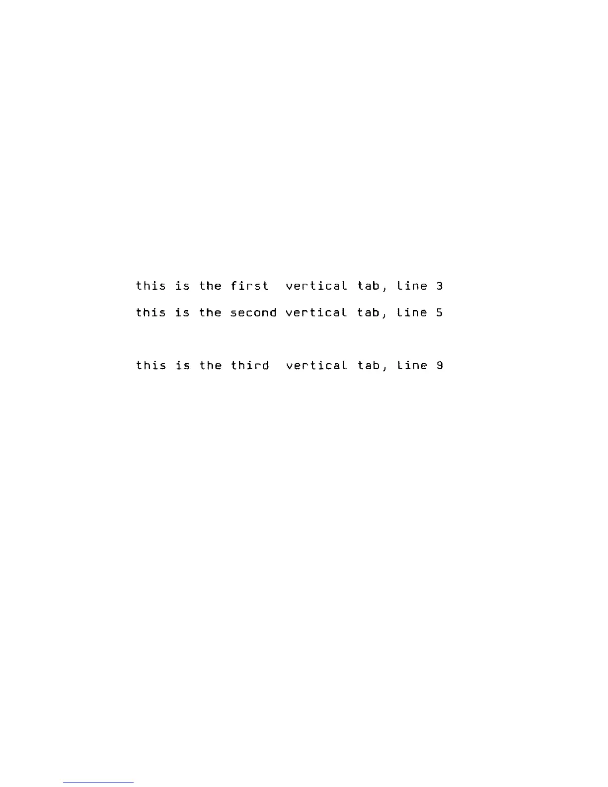 70 LPRINT CHR$(11);"this is the third vertical tab, line 9"