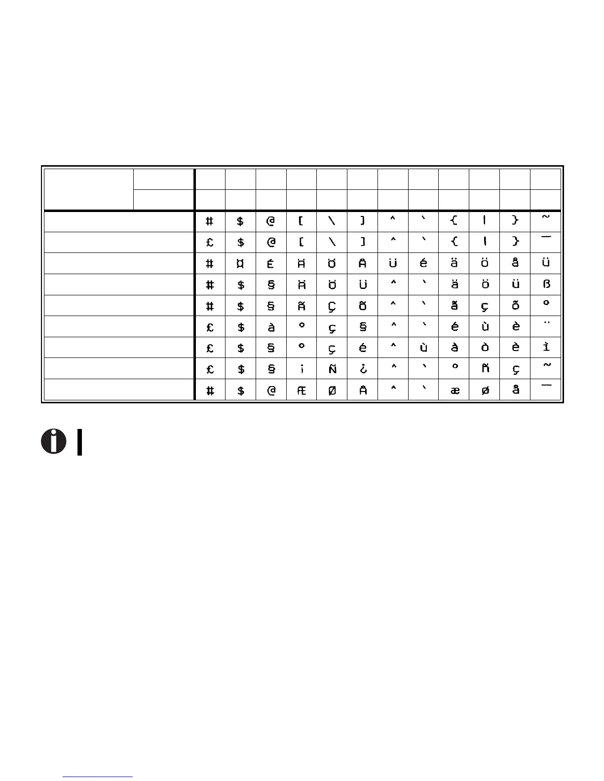 TallyGenicom Matrix Printer - International Substitution Table - Normal Font