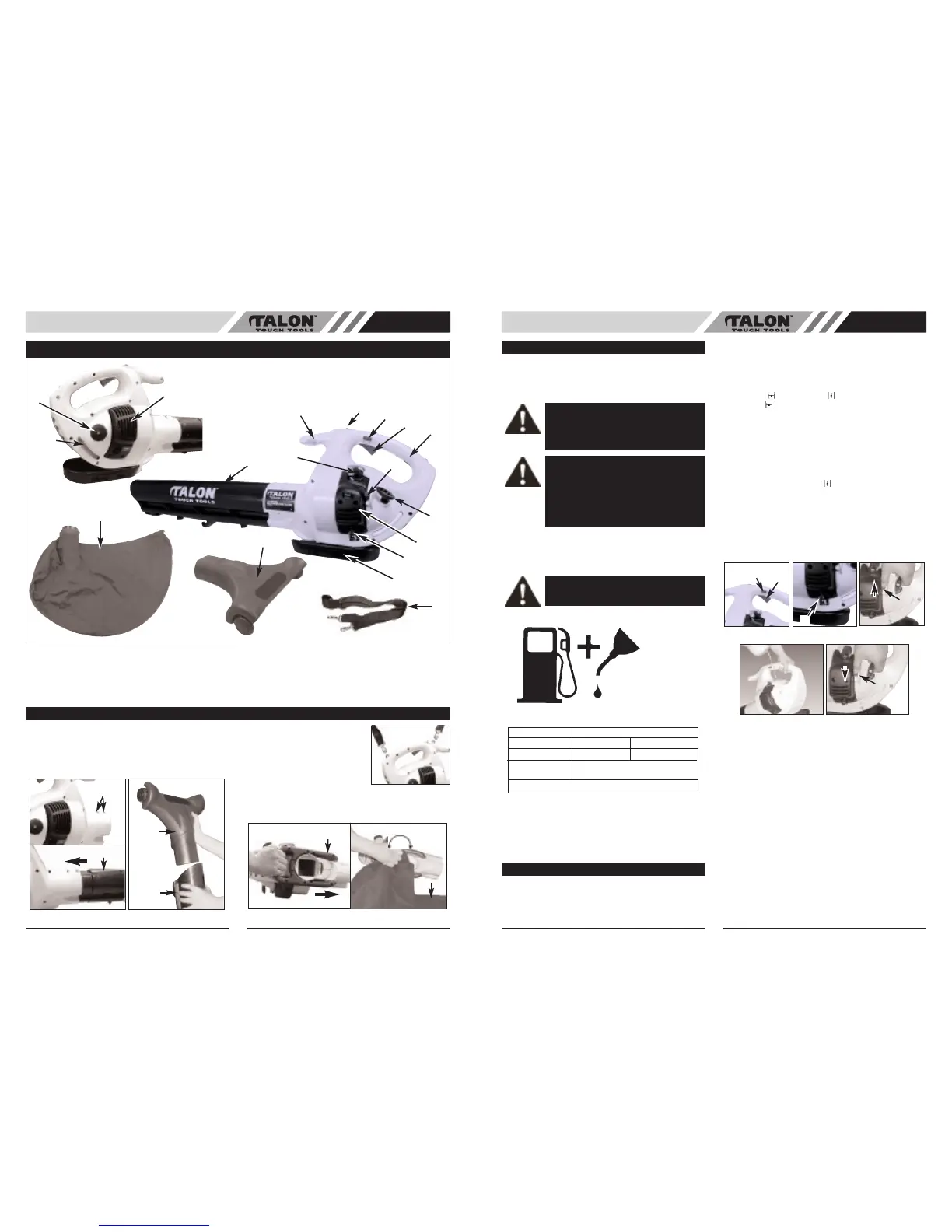 Mix fuel with Talon brand 2 cycle oil in an approved con-