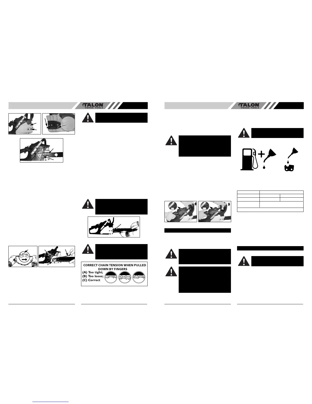 2. Fill the oil tank (B) with correct chain and bar oil (Fig.