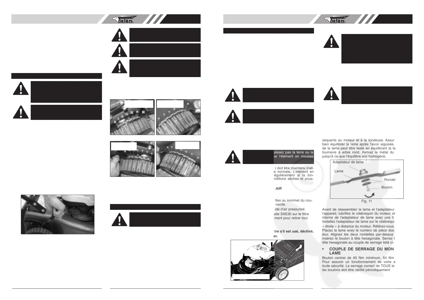 séquents au moteur et à la tondeuse. Assurez-vous de