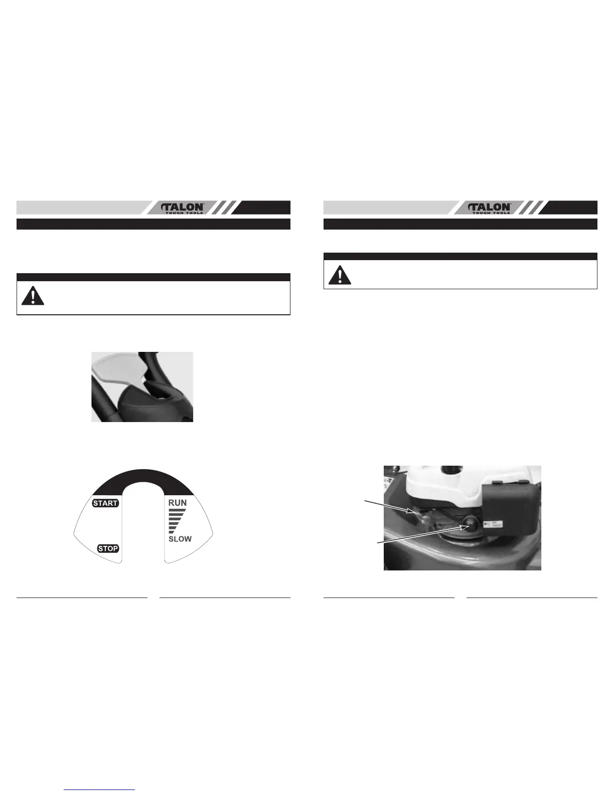 mower stationary. Grasp the starter rope handle and pull slowly until resistance is felt.