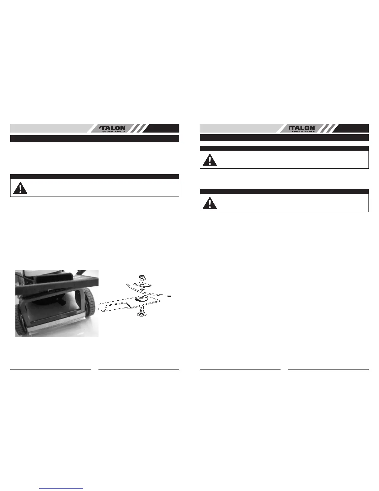 Never tip mower sideways. To gain access to blades or cutting disc tilt backwards