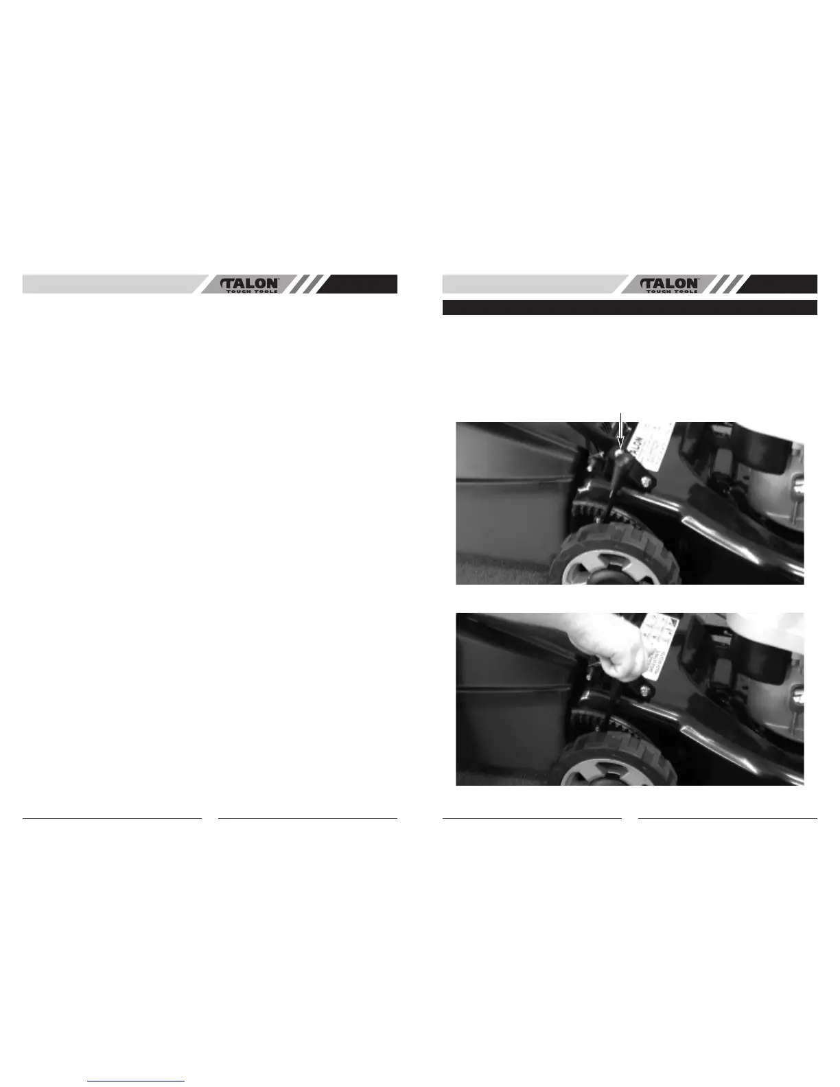 four wheels simultaneously. To operate, steady the mower by grasping the handle with one