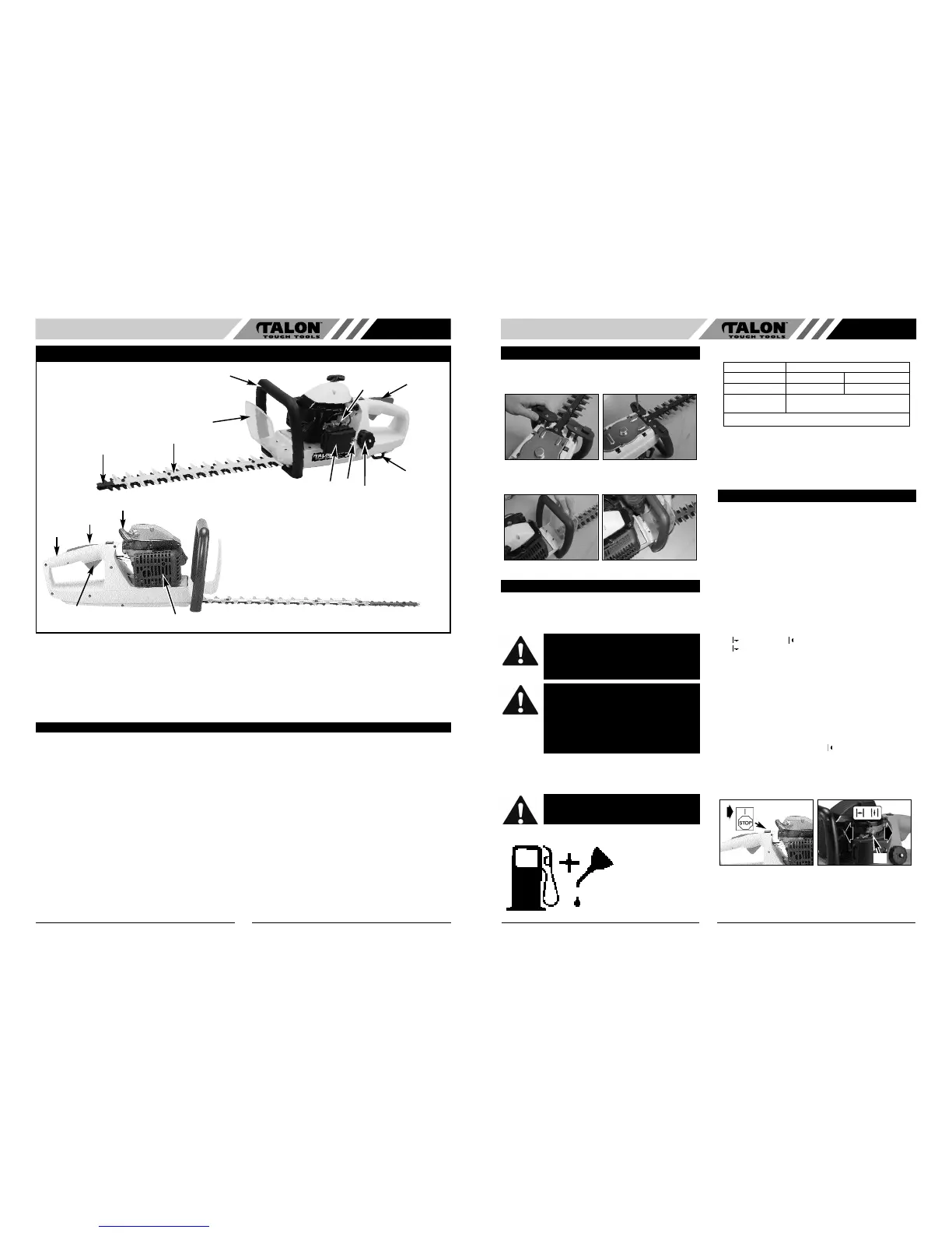 Mix fuel with Talon brand 2 cycle oil in an approved con-
