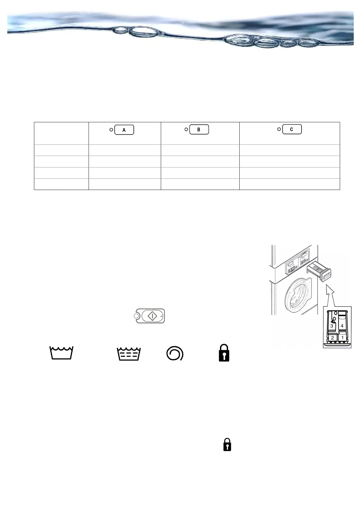 Choose the washing power according to the laundry soil level with the A, B or C buttons.