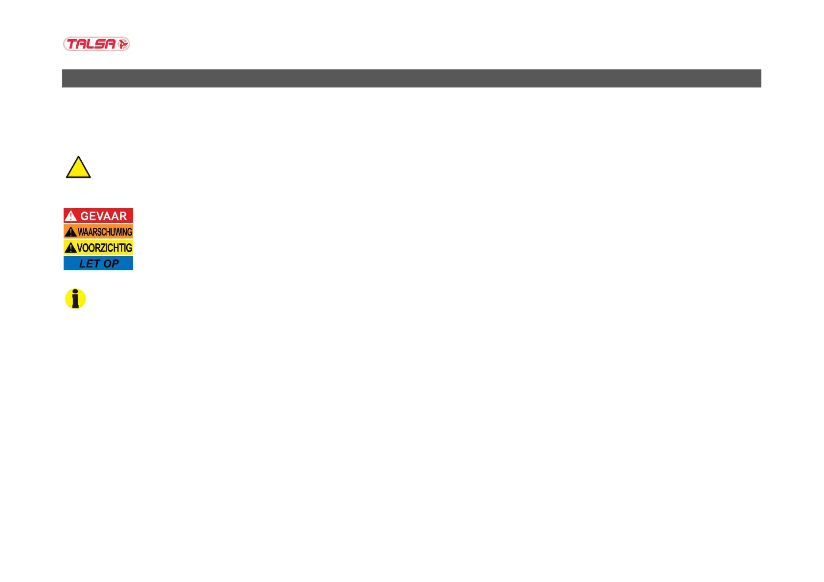 Deze veiligheidsinstructies zijn instructies en voorzorgsmaatregelen die moeten worden opgevolgd of toegepast om een gevaarlijke situatie te voorkomen.