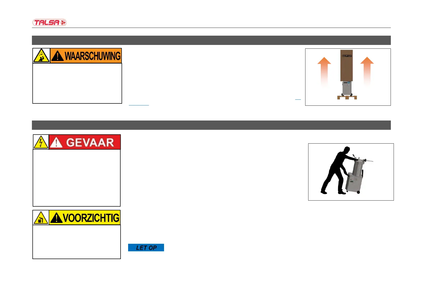 (Opstellen) om de stopmachine veilig naar een geschikt werkgebied te vervoeren. Uw