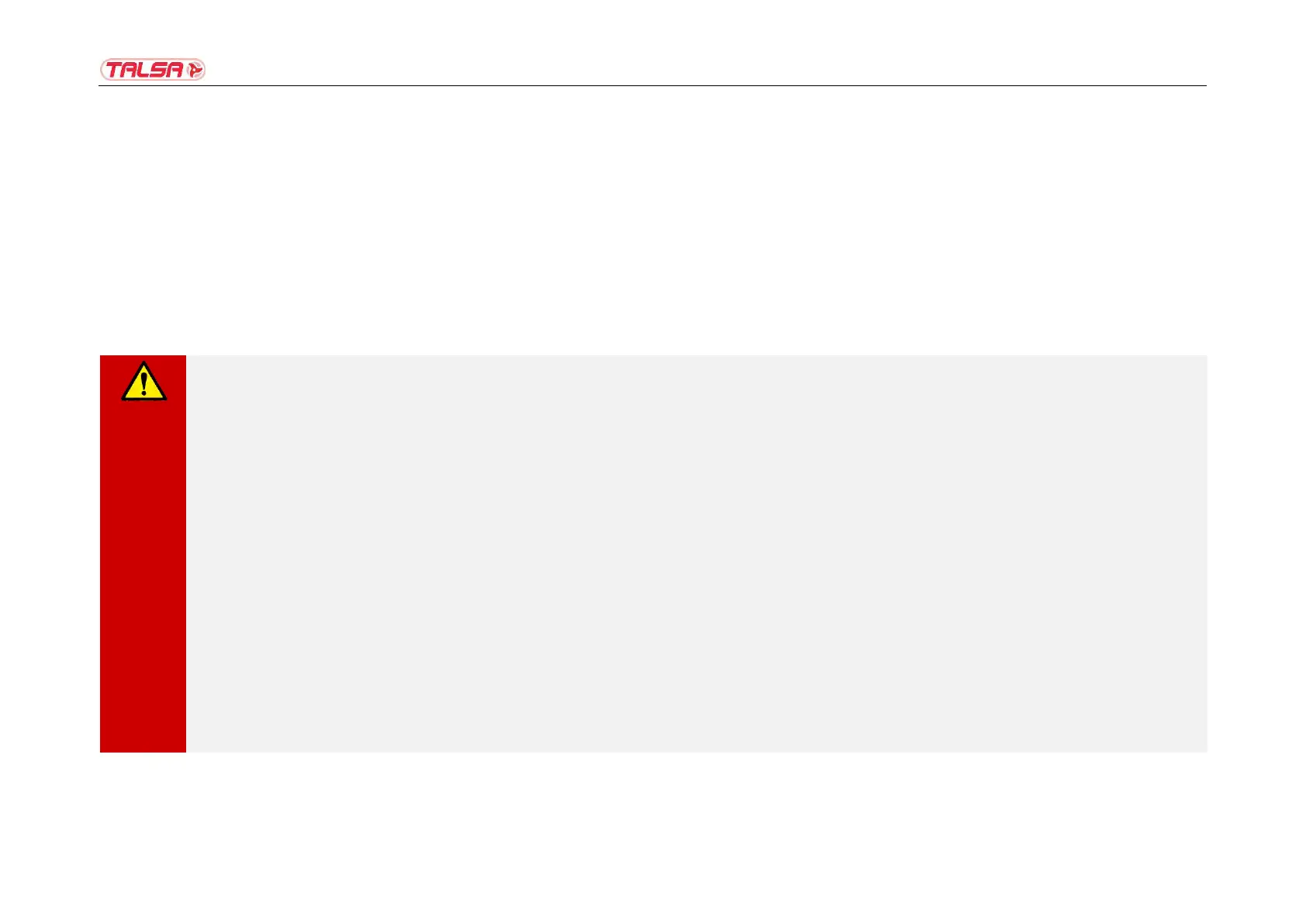 No está permitido modificar la máquina sin la previa autorización expresa de Talsa, ni en su diseño ni en cuanto a sus sistemas de seguridad. Talsa no responderá por los daños que se produzcan
